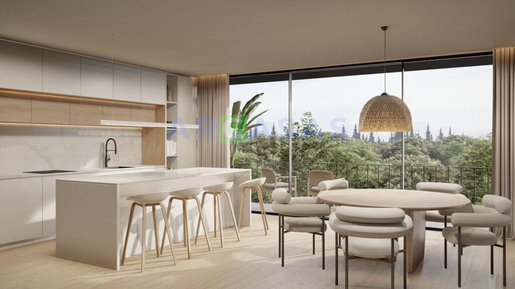 Com design funcional e moderno, as cozinhas são equipadas com móveis em MDF hidrofugo, ilha e despenseiro, bancadas em Silestone, e eletrodomésticos Bosch topo de gama, tornando cada refeição uma experiência gourmet.